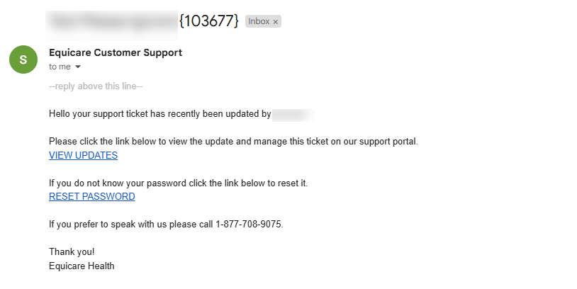 2. You will receive an email notification whenever your ticket is updated. The updates will not be visible in the email and must be accessed through the ‘View Ticket’ link.